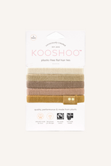 Kooshoo-elastikkerne er lavet af certificeret økologisk bomuld og naturgummi. De er 100% plastikfri, 100% nedbrydelige, farvet med certificeret økologisk farve og så er de skånsomme for håret. Oven i købet kan de vaskes på uldvask i din vaskemaskine.