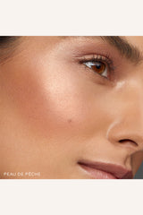 Påfør highlighteren dér hvor du gerne vil have ekstra glød og shine. Som kindben, næseryg og amorbue. Den er også smuk på øjenlågene. Du kan både bruge fingrene til at duppe eller Blender Brush, der er perfekt til formålet. Der er et spejl i highlighterens låg, så den er perfekt til tasken og til touch up.