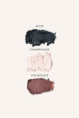 Les Nuits indeholder Noir; en smokey sort med et smukt, multifarvet skær, Champagne; en lys champagnefarve med et pink skær, som er perfekt i øjenkrogen og under brynet og Vin Rouge; en dyb rødbrun, nærmest bordeaux, som særligt fremhæver blå og grønne øjne.