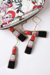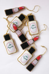 Denne gang kan du pynte op med den smukkeste broderede læbestift, i klassisk julerød, naturligvis. Og så kan du jo krydse fingre for at der ligger lignende skønhedsgaver under træet.