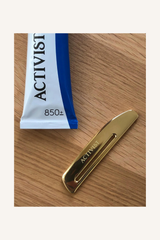 Det er Activist, dem med de hypede Manuka-honningprodukter, der står bag tubepresseren i messing, og den er naturligvis særligt udviklet til deres fantastiske ansigtsmaske Manuka Honey Mask, men kan selvfølgelig også bruges på dine andre beautytuber.