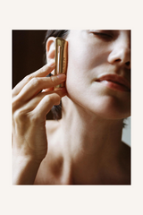 Kom et par dråber olie eller serum, gerne Activists Green Botanical Serum, på ren hud. Brug den runde side af gua sha’en og kør den i lange lige stræk hen over huden. Det vil stimulere blodcirkulationen og lymfesystemet og hjælpe med at give glød, løfte og få ansigtet i de rette folder.