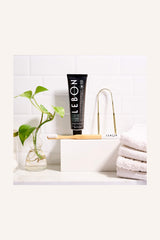 I Lebons Natural Mint+Charcoal Toothpaste er det aktive kul tilføjet for sin rensende effekt og for at gøre tandpastaen ekstra effektiv mod misfarvninger på tænderne. Ligesom resten af Lebon-tandpastaerne er den selvfølgelig uden SLS, sulfater, parabener, flouride, farvestoffer, triclosan, saccharin, sorbitol, titanium dixode og deslige.