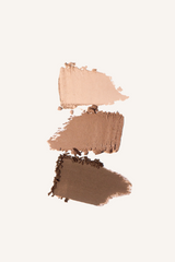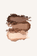 De tre brune toner kan bruges hver for sig eller sammen, hvor du starter med den varme chokoladebrune Café Crème over hele øjenlåget og langs øverste vippekant, følger op med Beige, der er en kølig brun, i globelinjen og langs de underste vipper, og slutter af med den lyse Vanille som highlighter under bryn og midt på øjenlåget for at åbne øjet.