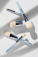 De fem makeupbørster, der er alle klædt i årets fine lyseblå nuance, sørger for at alt fra foundation og cremeblush til pudder, bronzer og concealer kommer til at blende smukt ind i huden – som havde en makeupartist givet dig en hånd.
