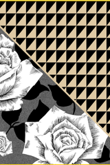 Silketørklædets print består af grafiske elementer fra Vintner's Daughters eget bagkatalog. Det balancerer elegant mellem delikat illustrerede roser og skarpt geometrisk mønster. Alt sammen i sort, hvidt og cremefarvet, og indrammet af en smuk gylden kant - samme nuancer som Vinters Daughters signatur-emballage. Når du nærstuderer mønstret, dukker flere små detaljer op, inklusiv det særlige In Natura Veritas-logo med stjerner, bier, planter, timeglas og en poetisk halvmåne.