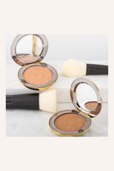 Børst blot det ønskede pudderprodukt enten i hele ansigtet eller på udvalgte steder som kindben, næseryg, pande og hage.