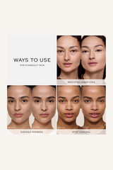 Resultatet er en hudplejende concealer, der dækker rødme, mørke rande og urenheder, lysner og løfter, visker porer væk og holder hele dagen. Kliniske tests viser endog, at den synligt forbedrer mørke rande i løbet af 4 ugers brug.