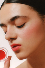 Balmen duppes på læber - og kinder og øjenlåg - med fingrene. Blend den forsigtigt ind i huden og kom mere på, hvis du ønsker en dybere farve. Den er pigmenteret, så lidt rækker langt.