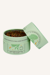 Teen fra Cosmic Dealer er sammensat af tre slags mynte; spearmint, sød mynte og pebermynte. De rå cacaonibs tilføjer dyb kakaosmag, og så er der tilsat en smule pink peberkorn, som giver den helt rette mængde spice og styrke til de sødere noter.