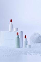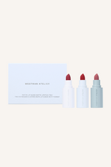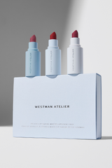 Den fine Petite Lip Suede Matte Lipstick Trio er ingen undtagelse. Æsken, der er en del af Westman Ateliers altid eftertragtede Holiday Editions, indeholder nemlig en komplet læbestift-garderobe af smukke farver i de fineste - très! - petites-størrelser.
